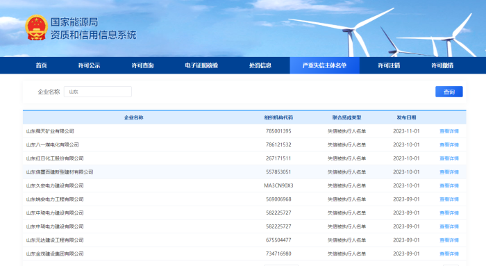 国家能源局资质和信用信息系统公布2023年严重失信主体名单