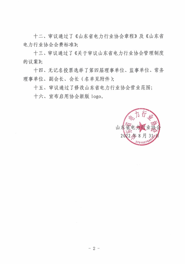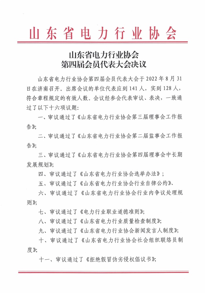 山东省电力行业协会第四届会员代表大会决议.pdf