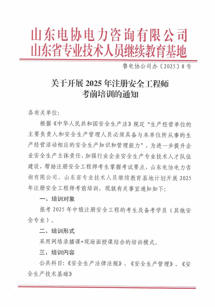 关于开展2025年注册安全工程师考前培训的通知