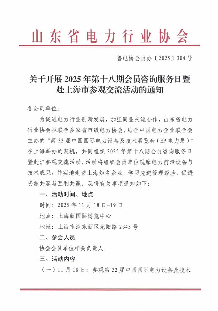 关于开展2025年第十八期会员咨询服务日暨赴上海市参观交流活动的通知