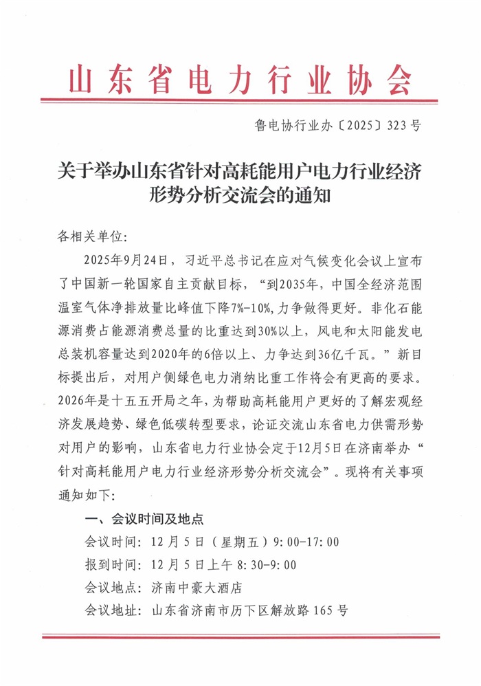 关于举办山东省针对高耗能用户电力行业经济形势分析交流会的通知