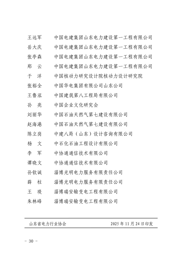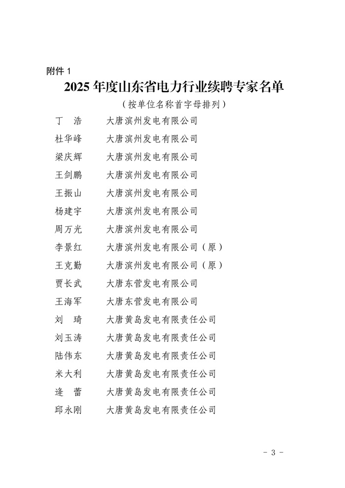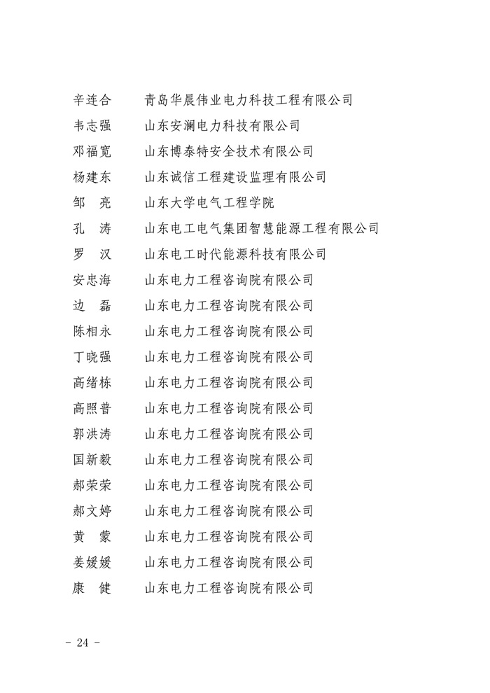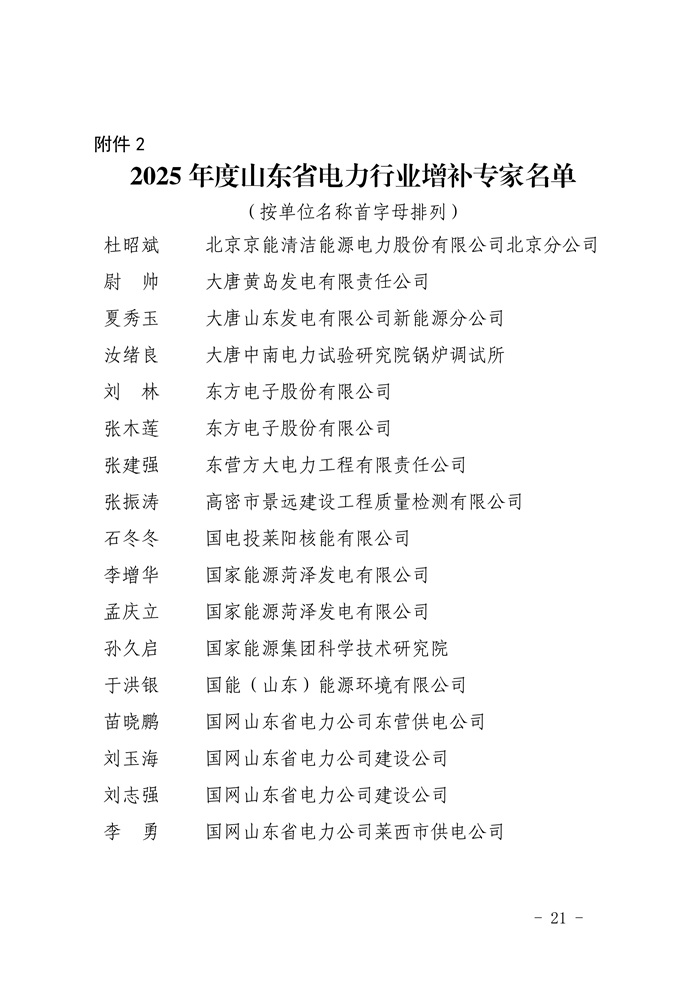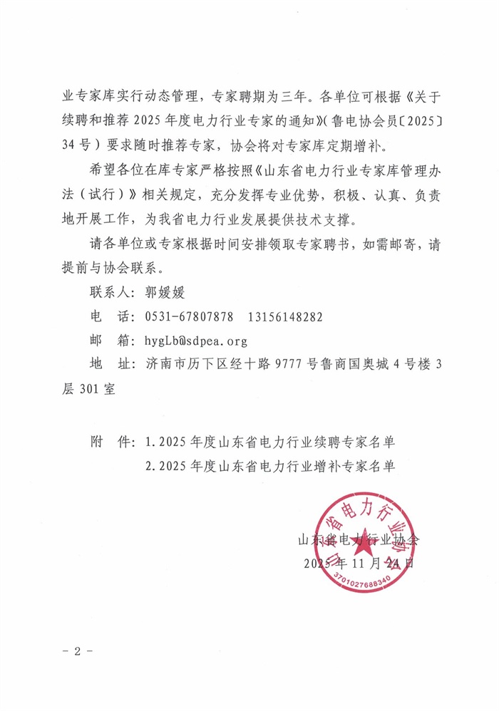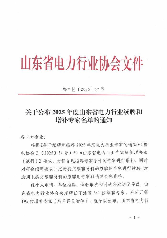 关于公布2025年度山东省电力行业续聘和增补专家名单的通知