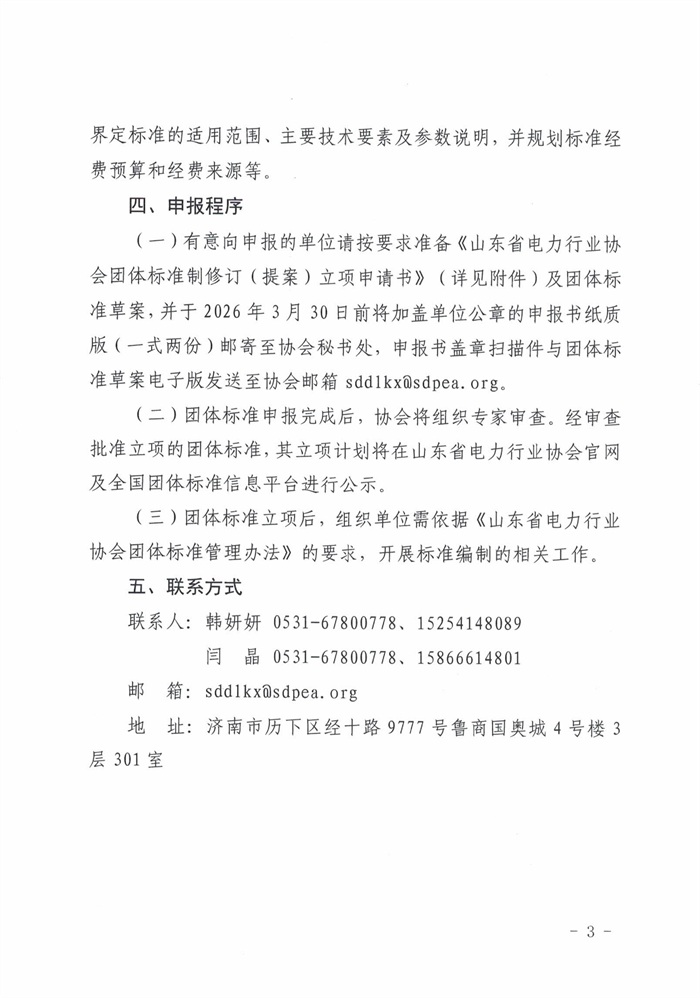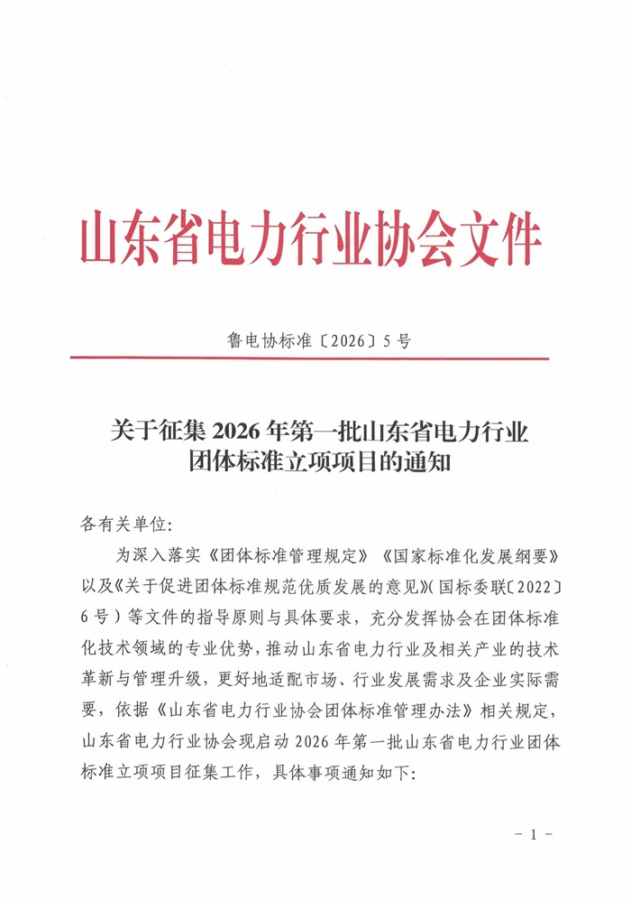 关于征集2026年第一批山东省电力行业团体标准立项项目的通知