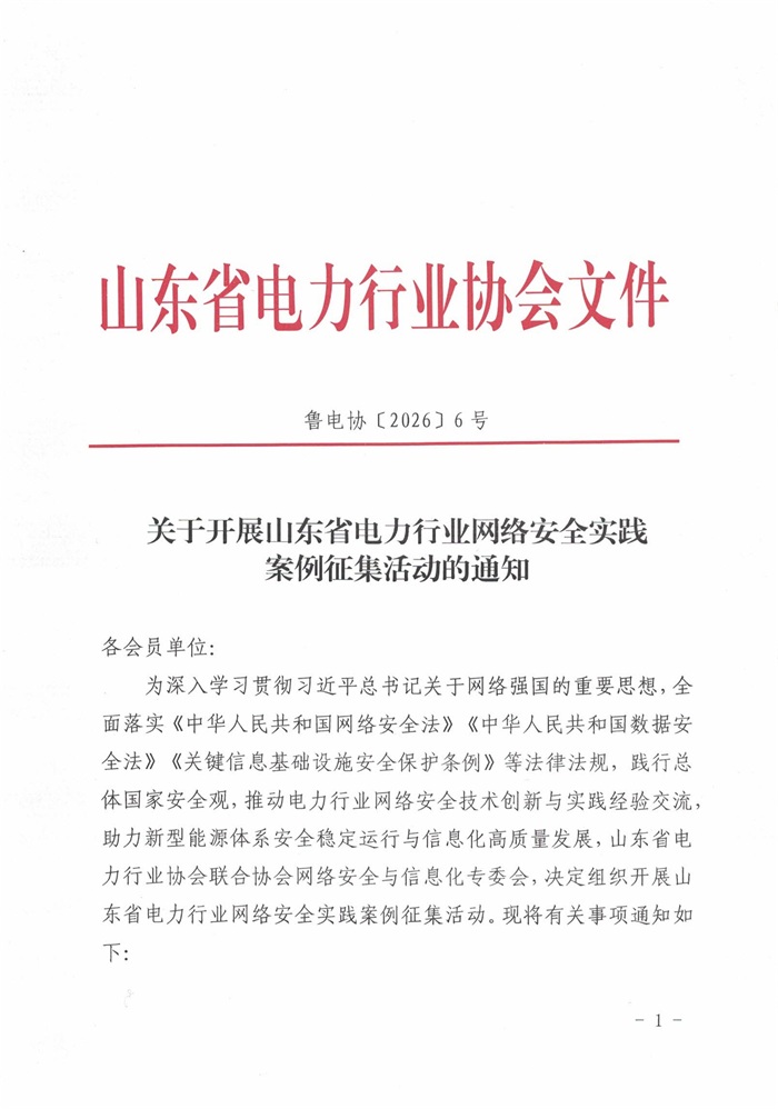 关于开展山东省电力行业网络安全实践案例征集活动的通知