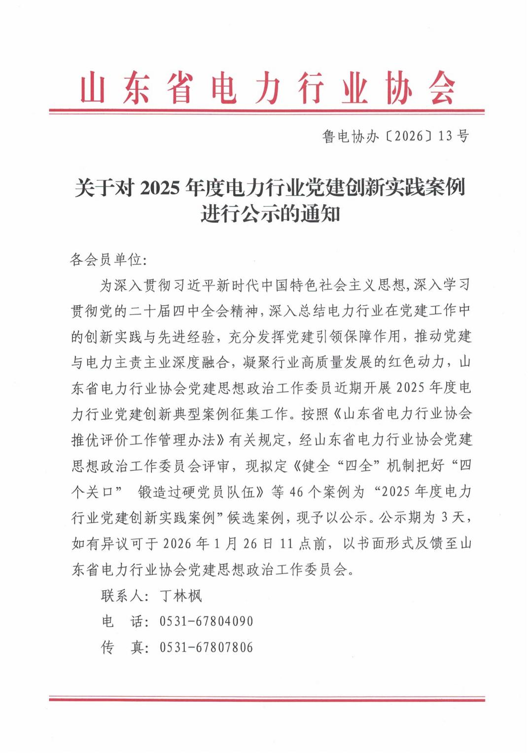 关于对2025年度电力行业党建创新实践案例进行公示的通知