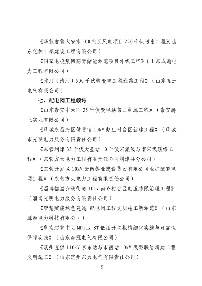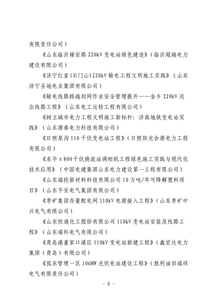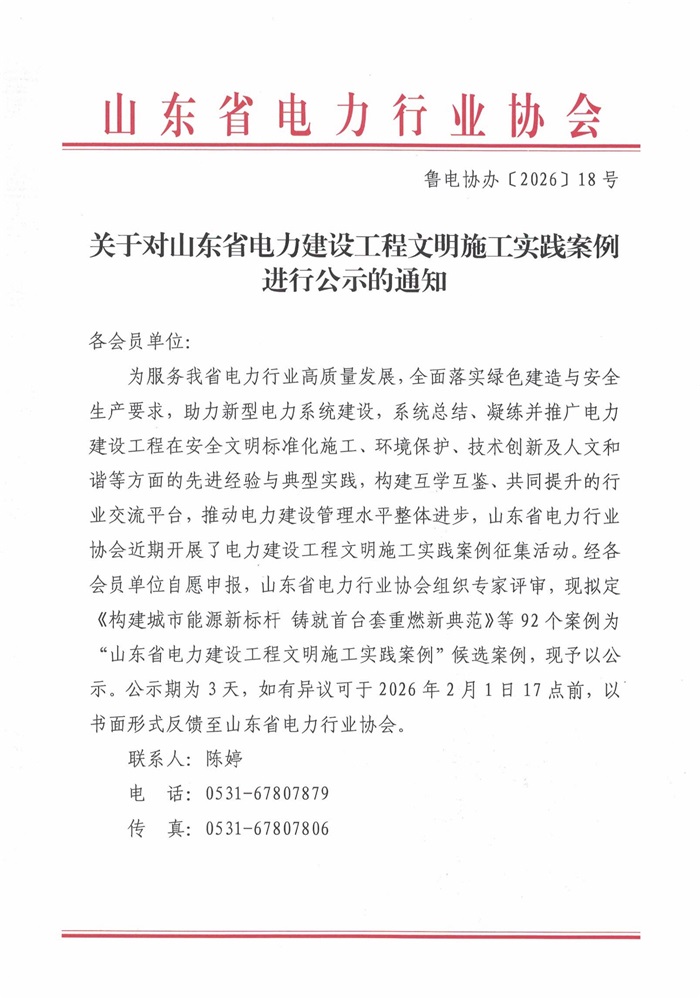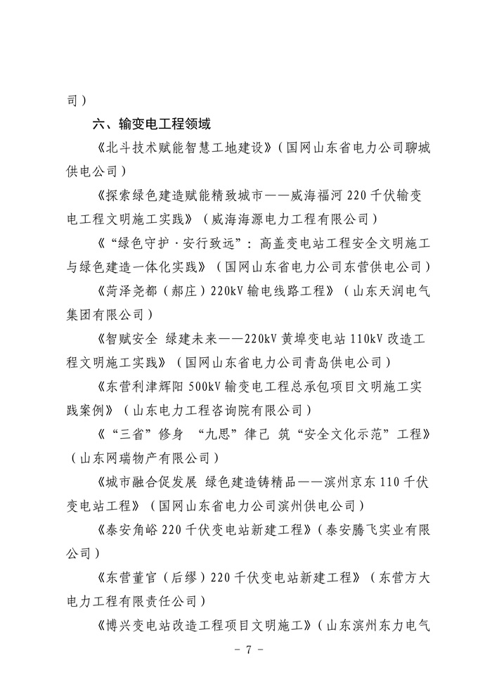 关于对山东省电力建设工程文明施工实践案例进行公示的通知