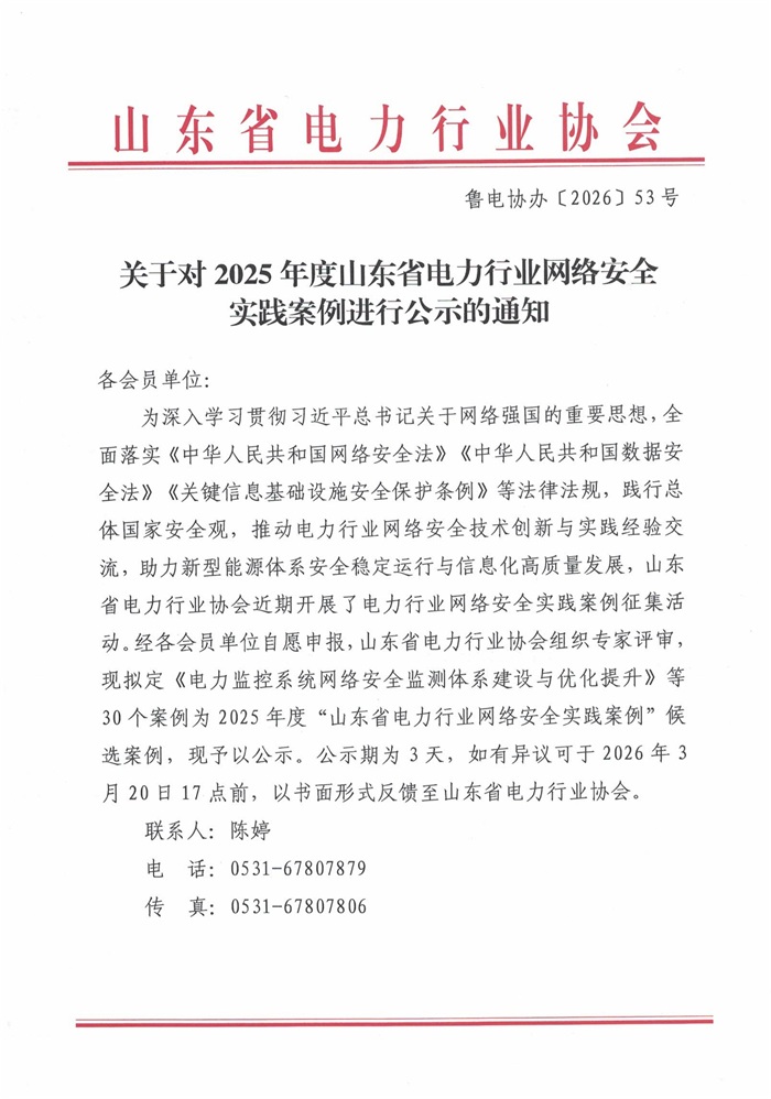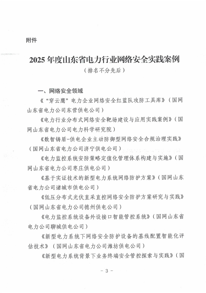 关于对2025年度山东省电力行业网络安全实践案例进行公示的通知