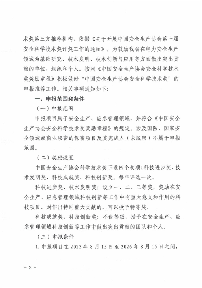 关于开展推荐中国安全生产协会第七届安全科学技术奖评奖工作的通知