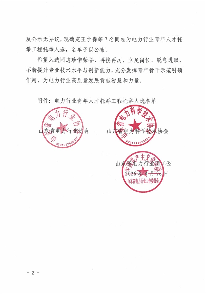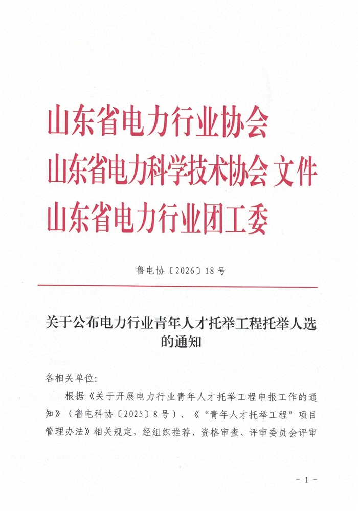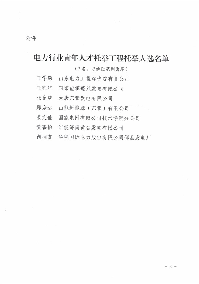 关于公布电力行业青年人才托举工程托举人选的通知