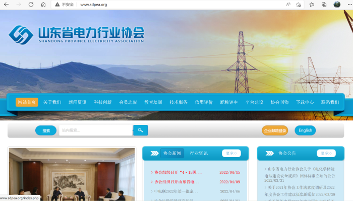 第一步:登录山东省电力行业协会官方网站http://www.sdpea.org/(如图所示)
