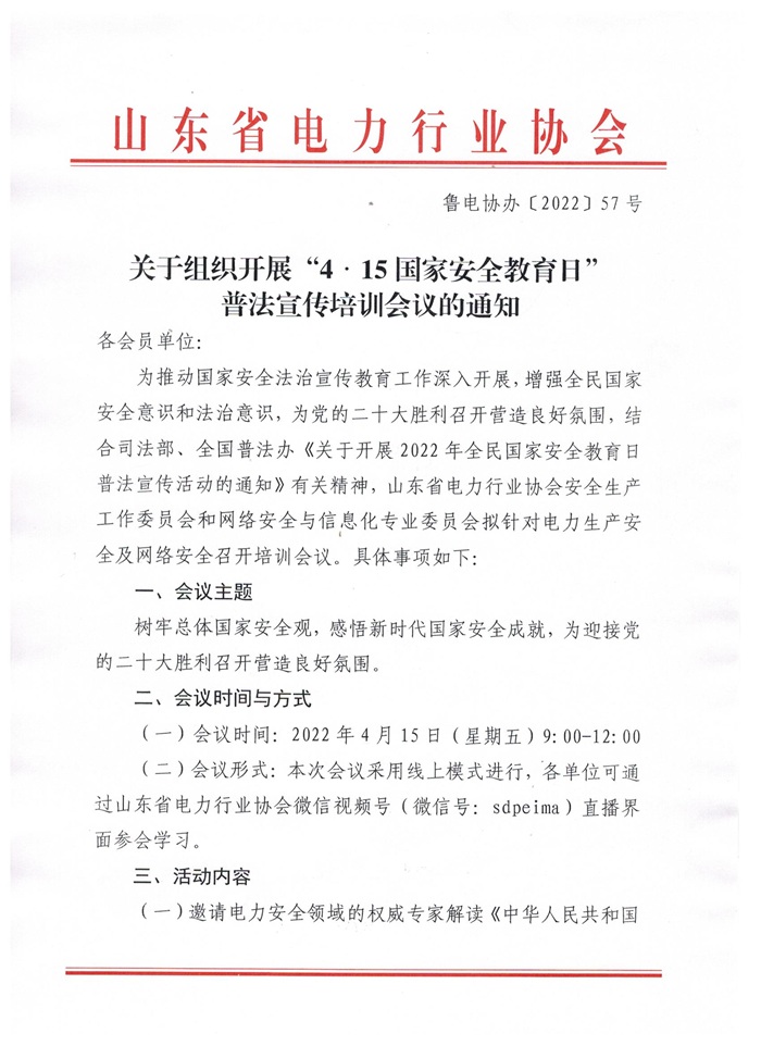 关于组织开展“4·15国家安全教育日”普法宣传培训会议的通知