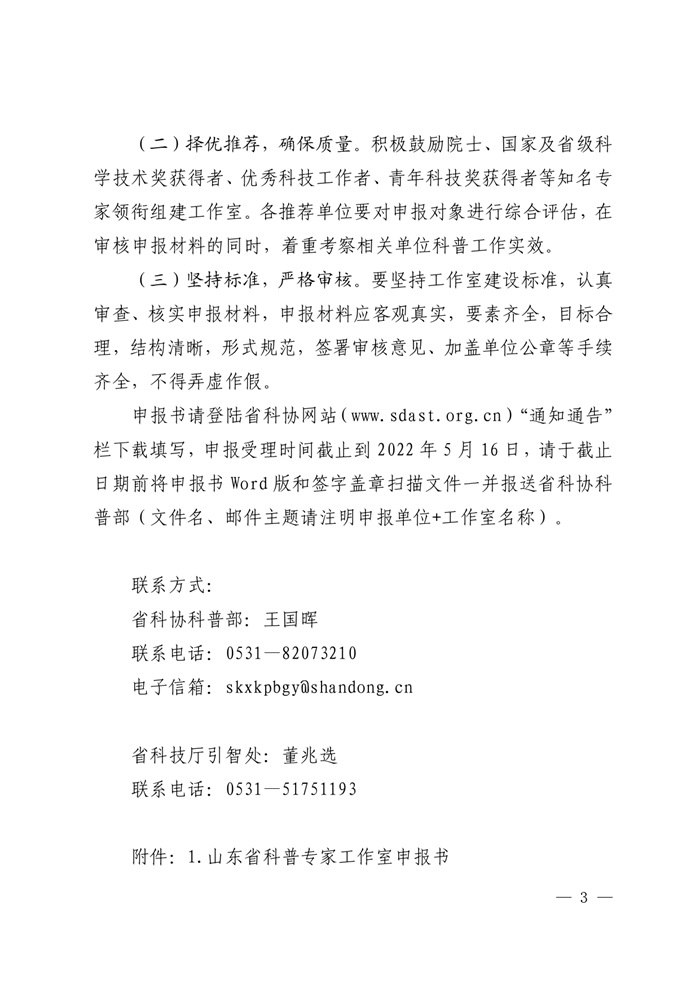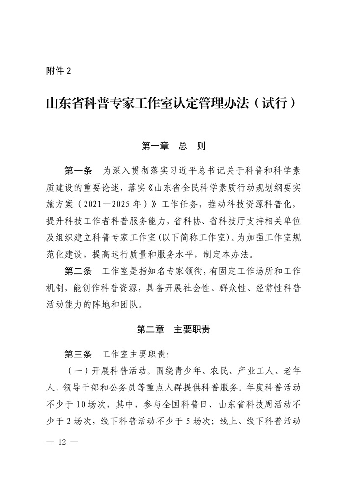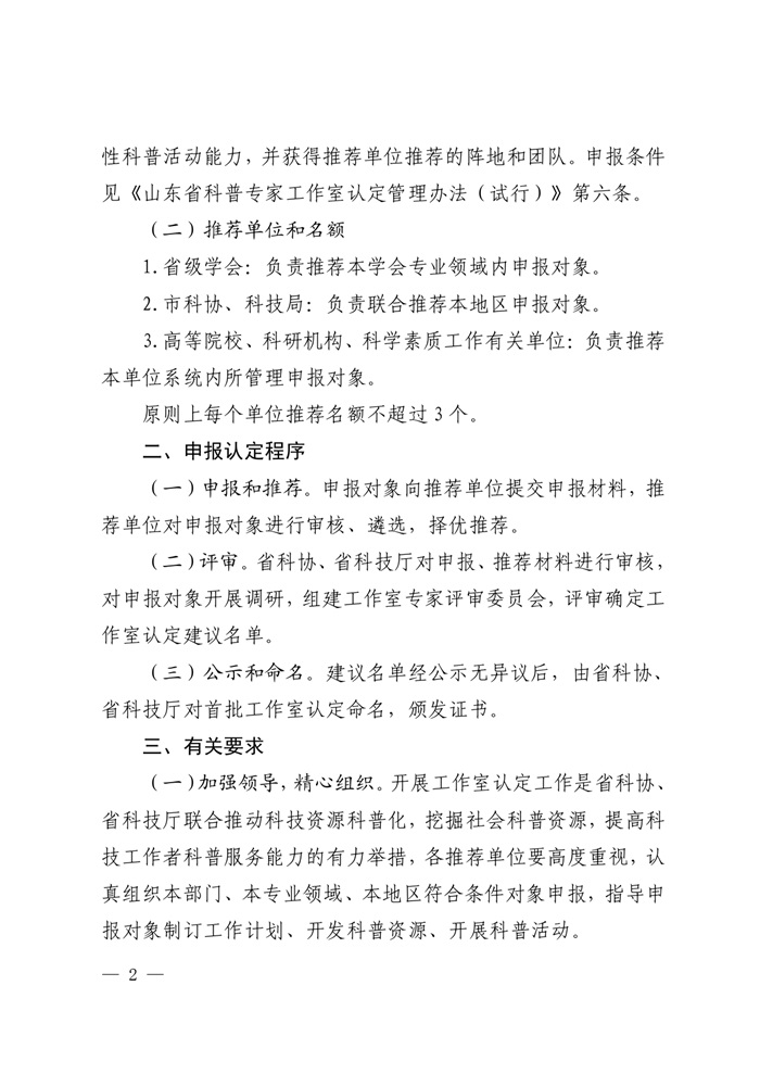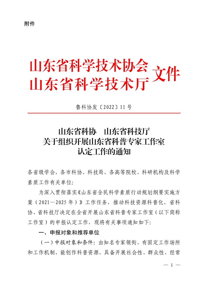 点击下载:关于转发山东省科协、山东省科技厅《关于组织开展山东省科普专家工作室认定工作的通知》的通知
