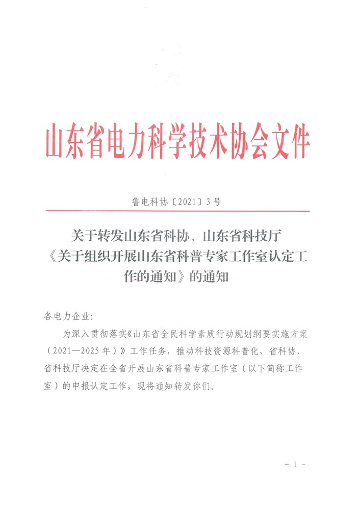 关于转发山东省科协、山东省科技厅《关于组织开展山东省科普专家工作室认定工作的通知》的通知