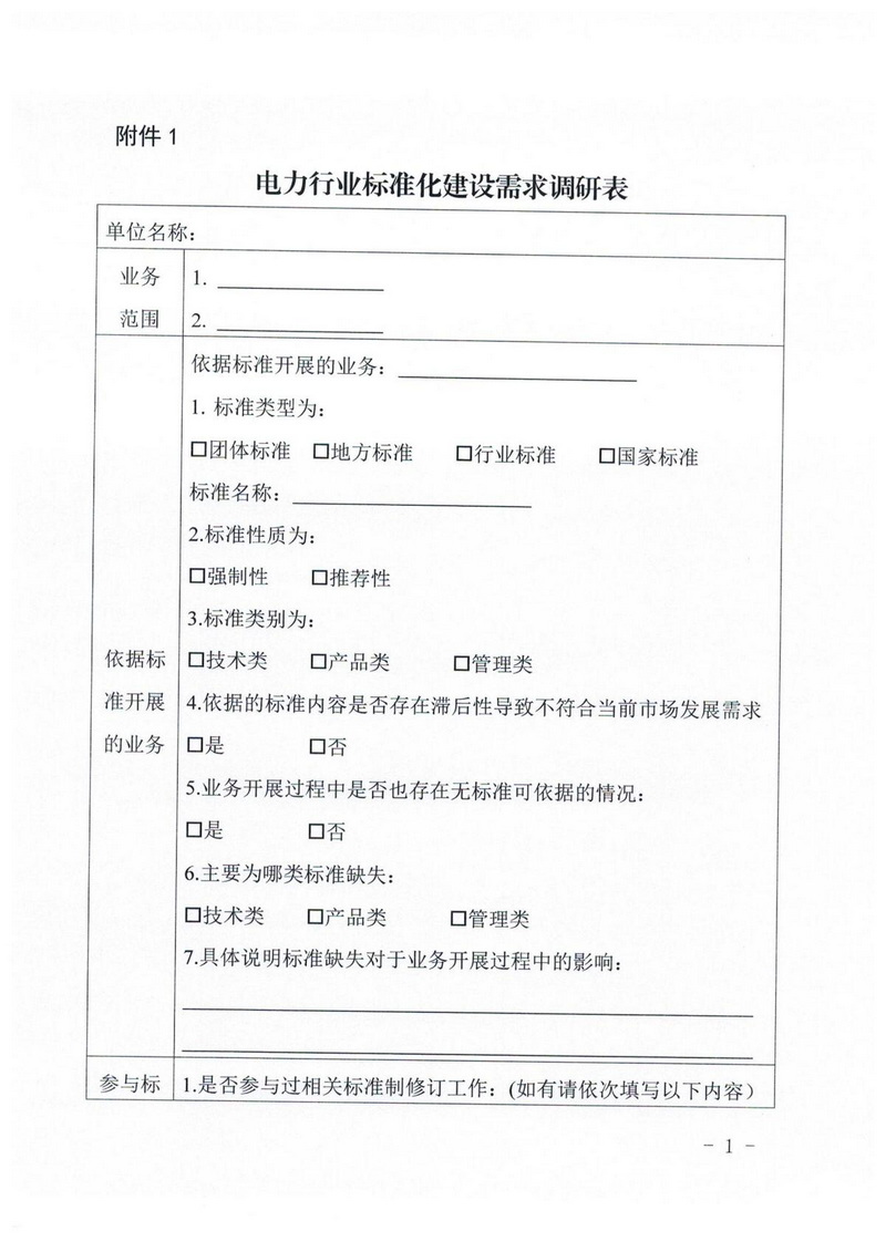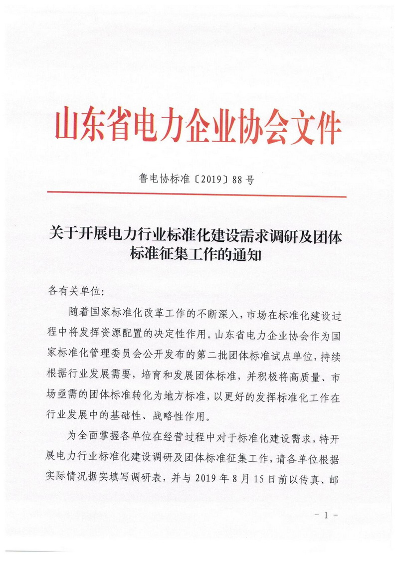 关于开展电力行业标准化建设需求调研及团体标准征集工作的通知