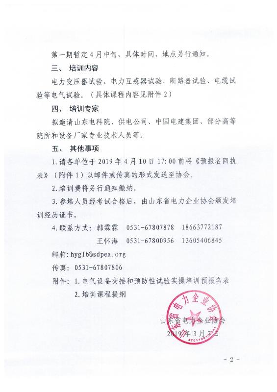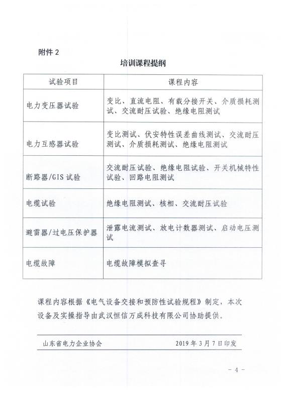 关于开展2019年度电气设备交接和预防性试验实操培训的预通知