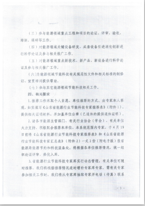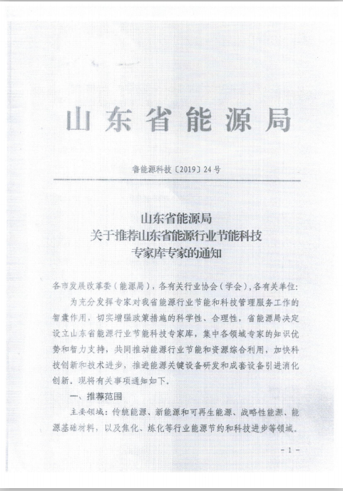 关于转发《山东省能源局关于推荐山东省能源行业节能科技专家库专家的通知》的通知