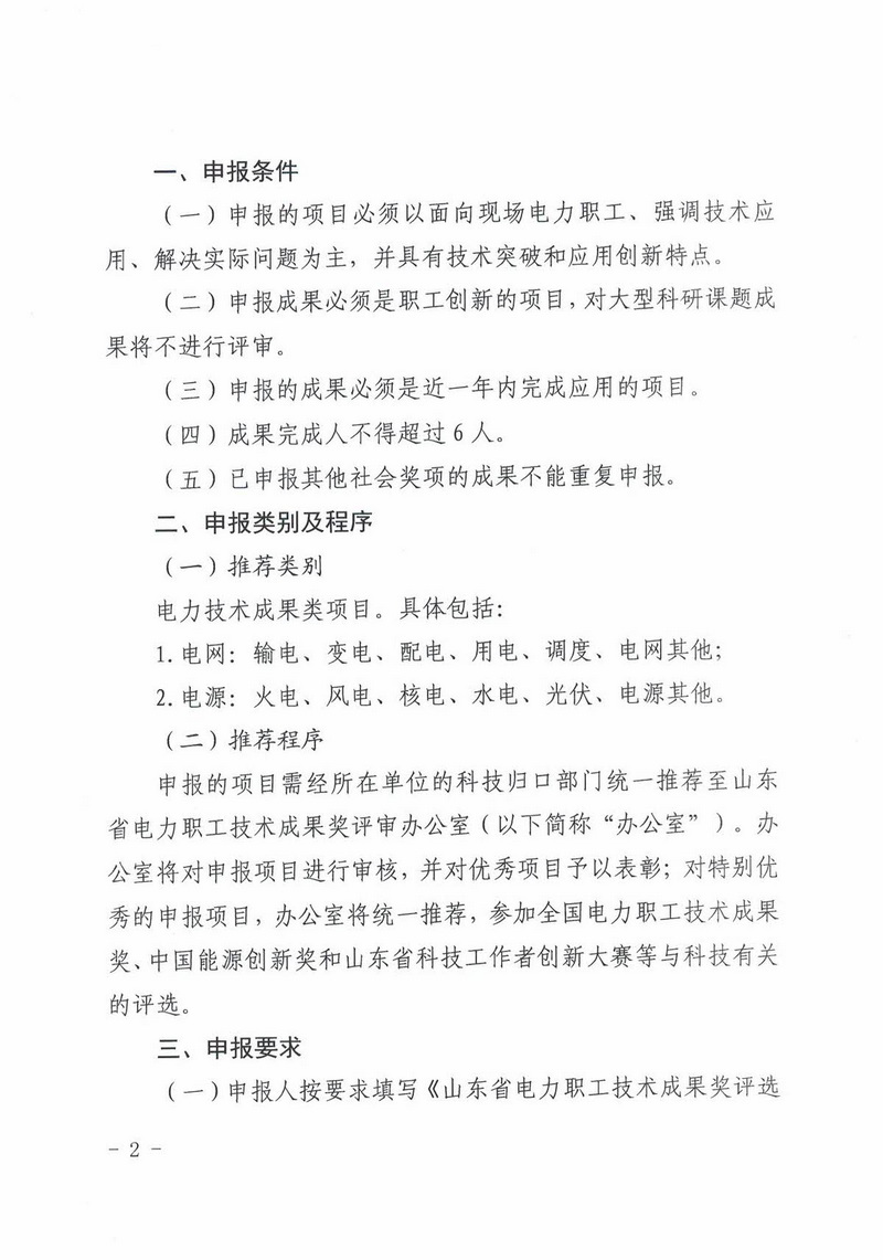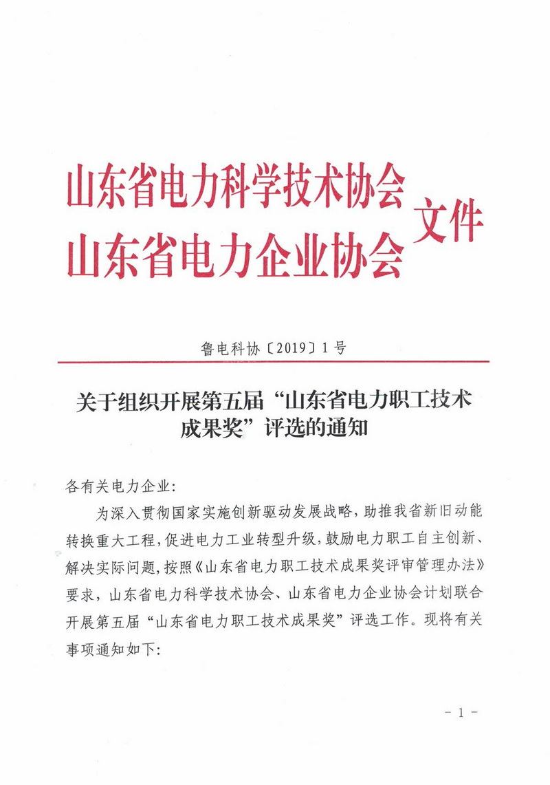 关于组织开展第五届“山东省电力职工技术成果奖”评选的通知