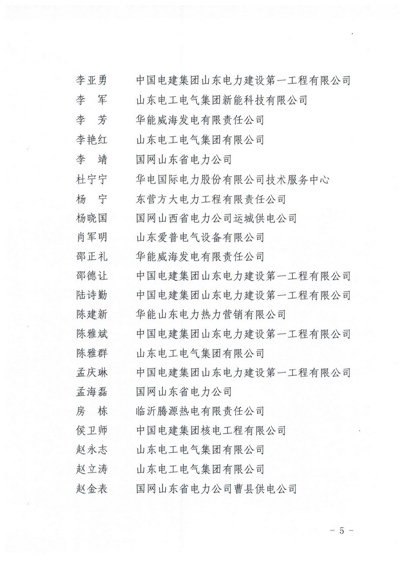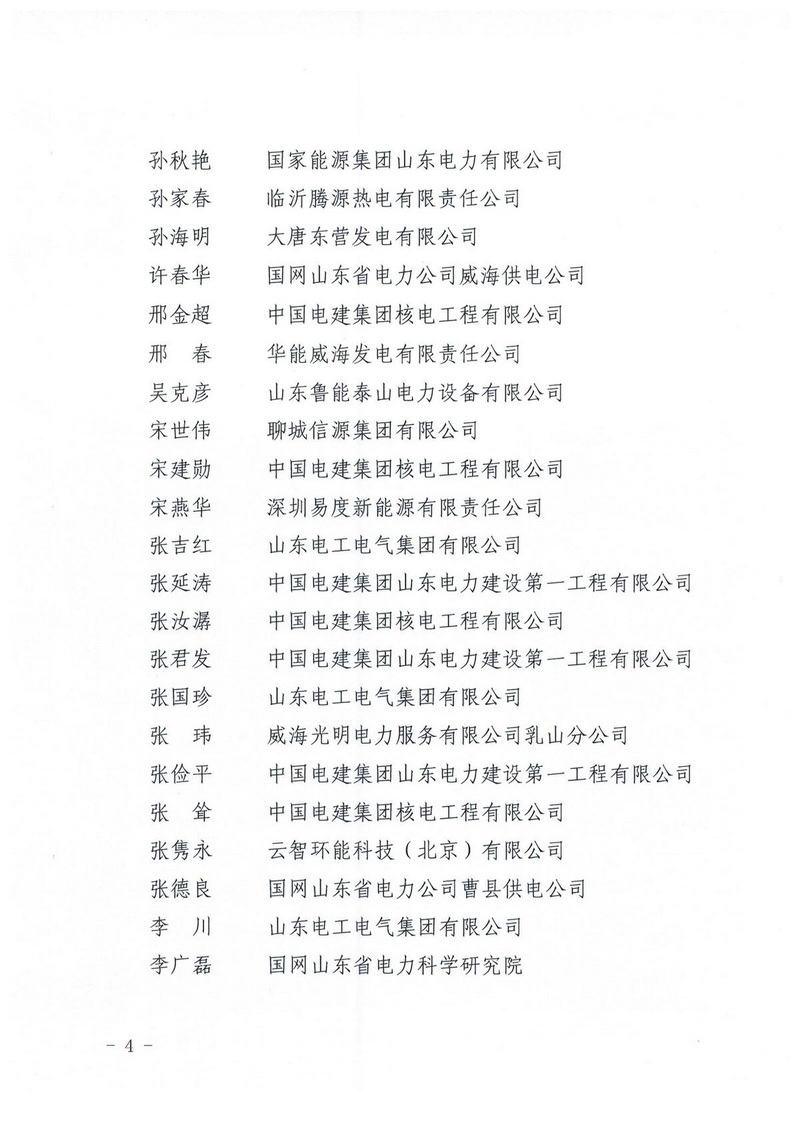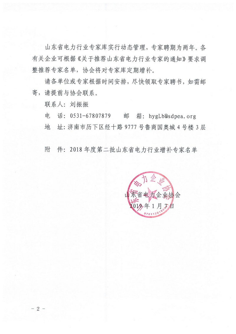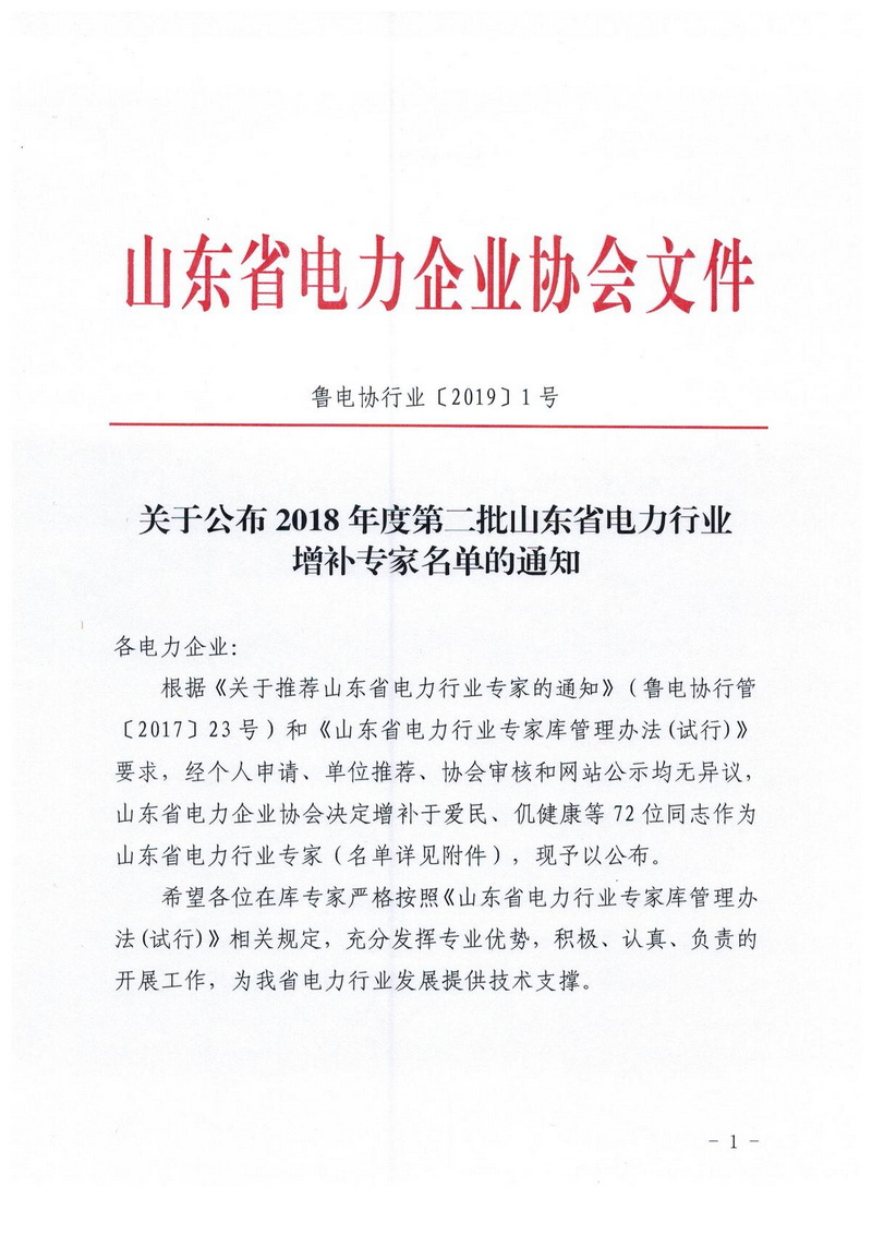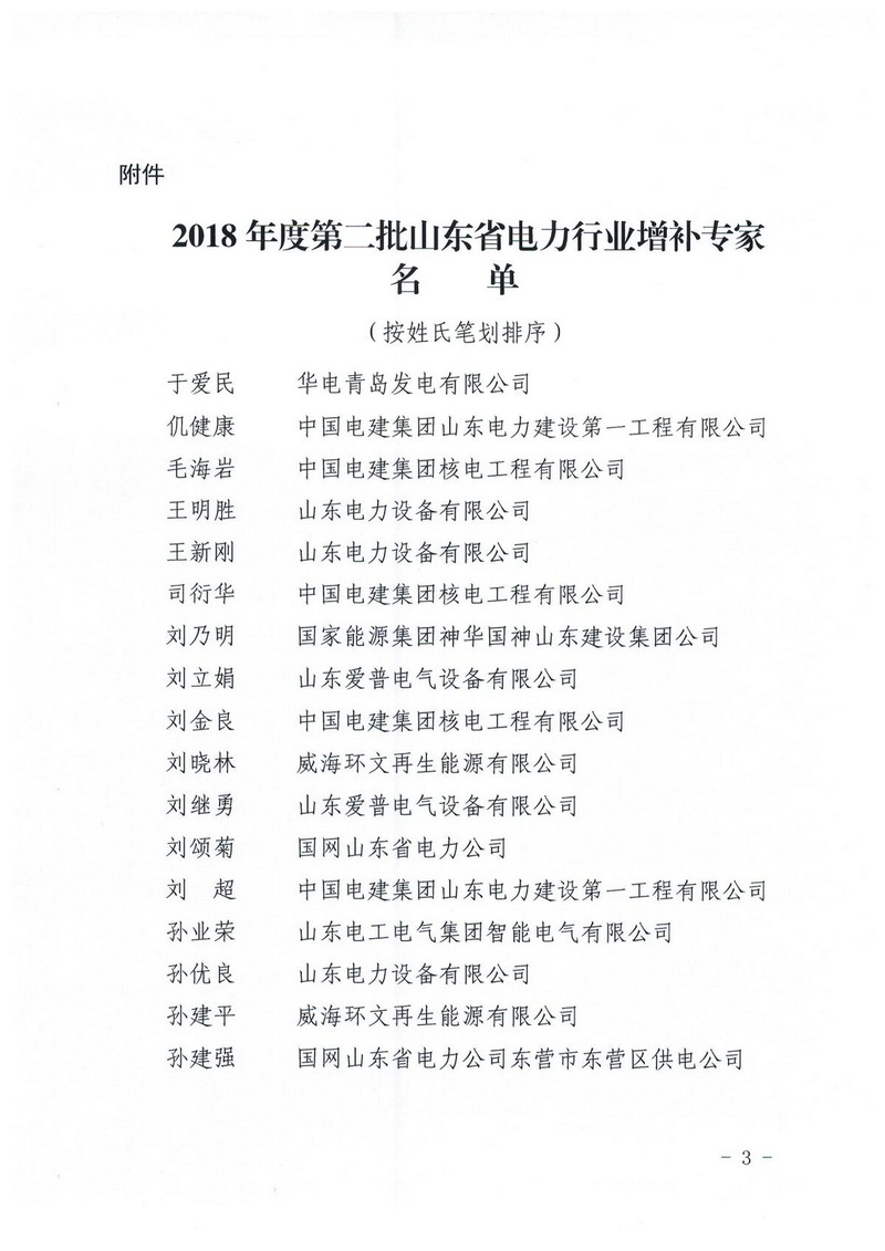 关于公布2018年度第二批山东省电力行业 增补专家名单的通知