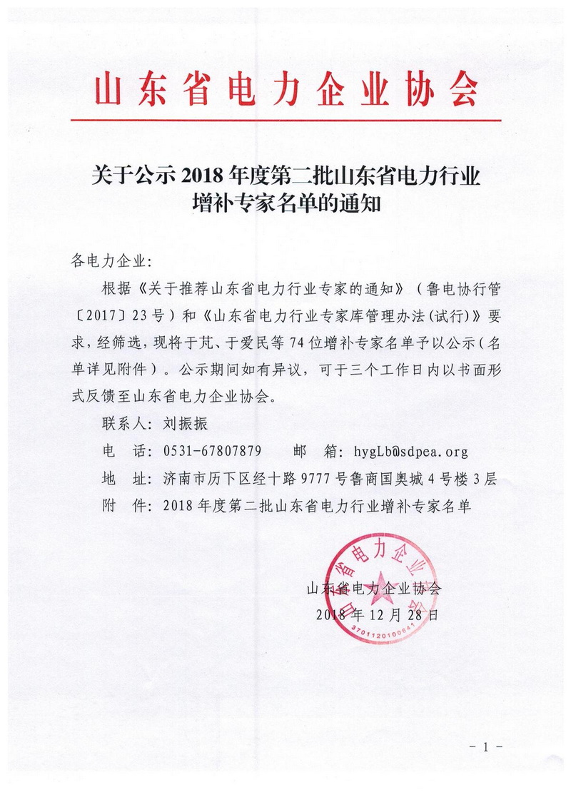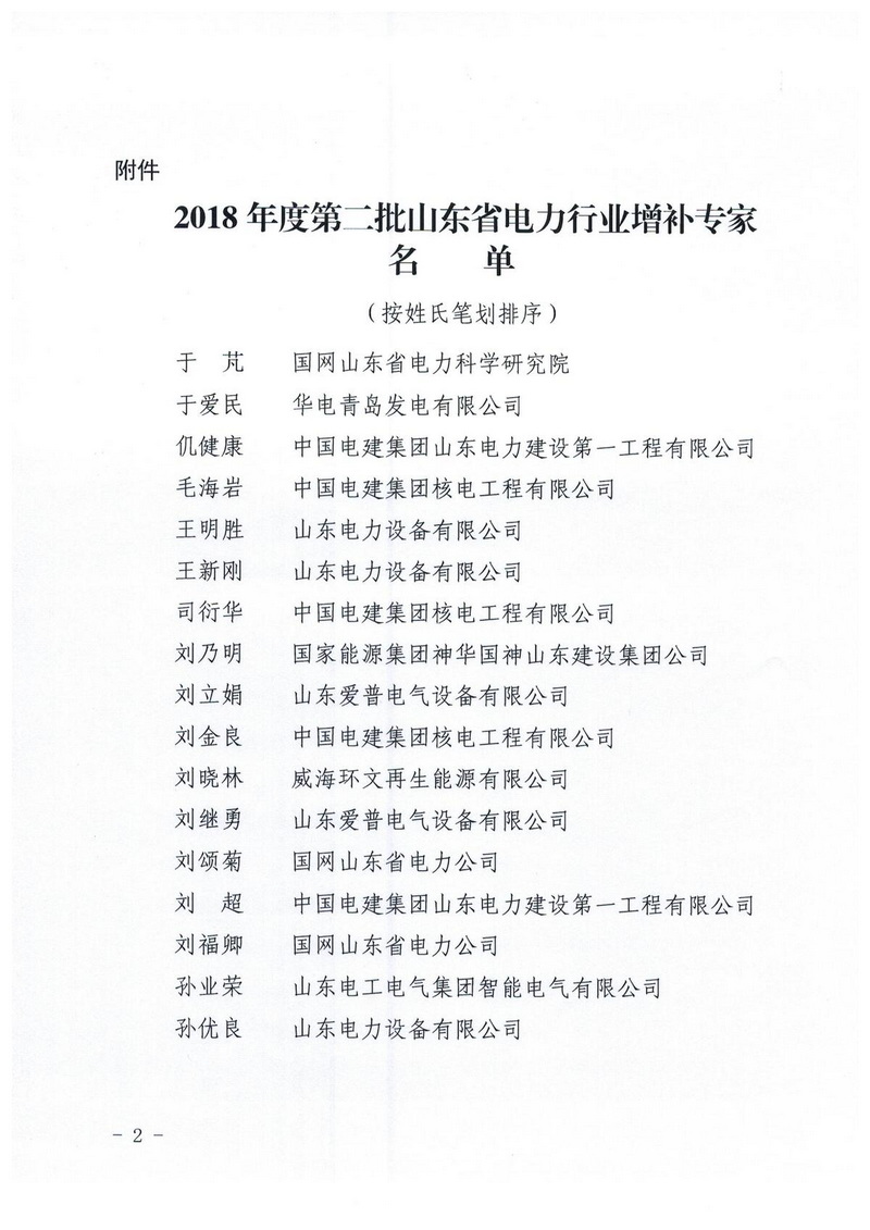 关于公示2018年度第二批山东省电力行业专家库增补专家名单的通知